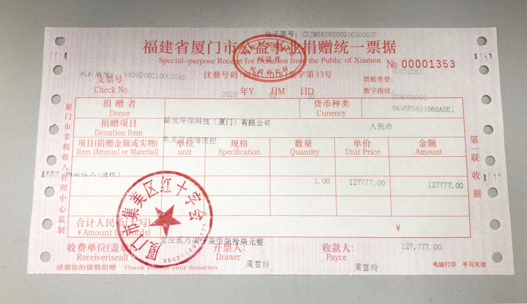 2020年的春節(jié),一場突如其來的疫情,牽動著14億中國人的心,在這場戰(zhàn)“疫”中,沒有一個人是旁觀者,每個人都是戰(zhàn)斗者。在疫情爆發(fā)后,公司第一時間參與到疫情防控的工作中,董事長馬明軍個人通過相關(guān)慈善機構(gòu)款5萬元現(xiàn)金,用以購買防控疫情物資支援疫情前線。同時組織召開公司總裁辦會議,決定由公司出資10萬元支援廈門本地抗擊疫情,盛發(fā)黨支部書記郭新勝與工會主席邱國紅組織黨員干部及員工進行捐款捐物,在短短2個小時內(nèi)共籌得善款27777元,以上善款合計127777全額捐贈給廈門市集美區(qū)紅十字會,用于疫情嚴重區(qū)域及本地疫情防控物資購買。